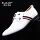 Ejiaip/壹佳逸品春季潮流白皮鞋真皮商务休闲皮鞋英伦透气男鞋子