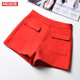 2017春装新款黑色短裤女 简约大码显瘦休闲裤前口袋阔腿裤a字热裤