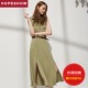 红袖2017夏新款军绿色长裙工装军旅开叉雪纺连衣裙90217171601