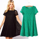 大码女装胖mm夏装新款1760独家花朵蕾丝宽松显瘦短袖连衣裙