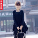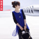 大码女装春装新款2040欧美风撞色拼接网纱长款胖mm宽松大码t恤