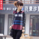 大码女装2015春装独家新款韩版条纹显瘦两件套长袖胖mm连衣裙