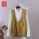 小爱文艺 日系V领针织马甲女2017春装宽松无袖外穿休闲毛衣背心