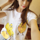 2017春新款毛绒绒金黄皇冠出壳小鸡可爱卡通印花纯棉短袖T恤女夏