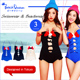 BeachQueen日本泳衣女小胸聚拢钢托裙式比基尼显瘦美国星条旗