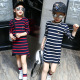 童装长袖t恤女童纯棉春秋2017新款韩版中大童儿童中长款条纹上衣