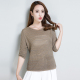 夏季可丽恩新款女装圆领真丝纯色t恤修身显瘦宽松镂空短袖T恤上衣