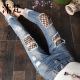 沐梵2016春秋季显瘦牛仔裤弹力刺绣铅笔裤百搭小脚裤子破洞裤女裤