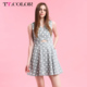 TTcolor2016夏装新款女装时尚纯棉V领露脐韩版无袖圆点A字连衣裙
