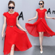 2017新款夏季连衣裙女修身显瘦时尚女装气质中长款夏装雪纺裙子潮