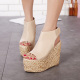 夏季增高厚底草编真皮鞋欧美牛皮厚底坡跟超高跟防水台鱼嘴女凉鞋
