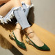 2017欧美夏季漆皮尖头平底单鞋一字扣凉鞋低跟粗跟金属方跟子鞋女