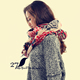 秋冬加厚加大保暖围巾女围脖潮范个性仿羊绒拼色图案围巾披肩两用