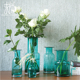 求饰 现代简约蓝色透明玻璃花瓶 创意家居插花美式客厅餐桌摆件