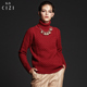 cizi新款秋冬女装打底毛衣刺绣花朵圆领长袖纯羊绒衫厚针织衫