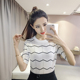 乐斯尼夏季新款韩版修身镂空条纹上衣短袖T恤女文艺棉针织衫黑白