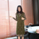 韩版秋冬修身碎花雪纺连衣裙女长袖印花中长款蕾丝背心裙两件套装