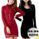 1 9.9包邮秋冬大码女装长袖纯色中长款加绒加厚打底衫包臀裙潮女