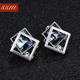 饰世美欧美气质几何图形重叠正方形耳钉 百搭大水钻闪亮耳环