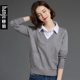 寒菊春秋宽松假两件小款翻领毛衣套头针织衫短款打底衫学院风毛衫