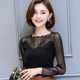 蕾丝打底衫女长袖2017春新款百搭镂空蕾丝衫薄网纱t恤上衣短款