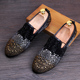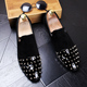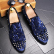 青年时尚潮男套脚尖头皮鞋铆钉亮片休闲鞋平底乐福鞋内增高豆豆鞋