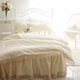 新款**韩版双荷叶边嵌手工褶皱花边白色贡缎纯棉四件套 床上用品