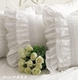 超值新款*荷叶边嵌蕾丝白色贡缎纯棉靠垫套/抱枕套/抱枕