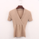 欧美性感春夏女装V领低胸修身紧身短袖螺纹针织打底衫交叉上衣T恤