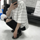 条纹短袖T恤男圆领潮流纯棉宽松2017夏季新款青年韩版休闲简约