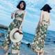 度假沙滩裙树叶印花荷叶边交叉绑带不规则露肩斜肩吊带连衣裙女夏