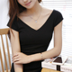 修身纯棉T恤女短袖打底衫白色V领夏体恤半袖上衣纯色短款大码女装