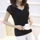 新款纯色百搭网纱短袖t恤女修身打底衫上衣短款圆领半袖大码女装