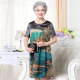 老年人夏装女短袖T恤奶奶印花中长款上衣70-80岁妈妈装花色套头t