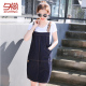 夕尚牛仔背带裙女夏季新款连衣裙中长款短袖牛仔背带裙两件套装潮