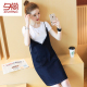 夕尚牛仔吊带裙女2017新款夏季韩版白T恤短袖牛仔连衣裙两件套潮