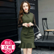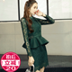 2017春季新款韩版时尚女装呢子马甲背心+翻领雪纺裙两件套连衣裙