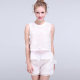 莲莉2015夏季小香风时尚女装甜美网格白色两件套无袖上衣短裤套装
