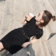 裙子连衣裙小黑裙镂空夏装韩版修身显瘦短袖纯色A字中长裙雪纺衫