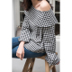 ShakeSnake春季新品 一字肩格子上衣 两穿