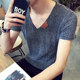 T恤男短袖夏季薄款V领体恤修身韩版学生纯色打底衫时尚简约半袖t