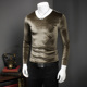春季新款韩版男士休闲上衣金丝绒修身长袖T恤大码纯色V领体恤衫潮