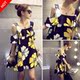 2016夏装新款韩版女装夏季气质淑女撞色印花吊带露肩荷叶边连衣裙