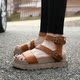 真皮凉鞋女复古文艺罗马平底鱼嘴凉鞋厚底坡跟松糕鞋凉鞋女鞋