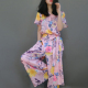 欧货2017阔腿裤套装女夏季时尚潮优雅系带印花名媛宽松两件套大码