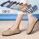简希夏款懒人鞋帆布鞋平跟老北京布鞋女一脚蹬条纹工作平底鞋单鞋
