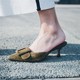 [MS MESSA]定制小众牛皮小猫跟百搭细跟中跟拖鞋3-5厘米高跟鞋