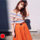 SLYMOUSY露肩一字领交叉设计紧身条纹针织衫T恤上衣