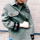 SLYMOUSY新款个性刺绣花朵徽章军装风衬衫