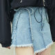SLYMOUSY个性帅气破洞拉丝做旧磨白高腰显瘦牛仔短裤 热裤
